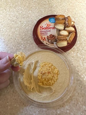 [This review was collected as part of a promotion.] I enjoy eating this Sabra Roasted garlic hummus - 8oz with chips, it’s delicious. It features a roasted garlic flavor that is incredibly aromatic and creamy. The container design is convenient and easy to use.