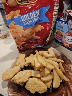 Ore-Ida Golden Thick Cut frozen French Fries are a regular repurchase for me. They are nice and crispy every time. With or without salt, they taste great! The perfect side item. Also a good quantity for the price.