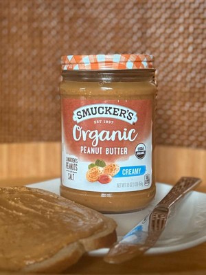 Smucker's Organic Creamy Peanut Butter is praised for its simple, organic ingredients and rich, natural taste. Guests appreciate its health benefits and the absence of added sugars and oils. However, some find it too runny or difficult to stir. The glass jar packaging is a plus for many, though the separation of oil can be a hassle.