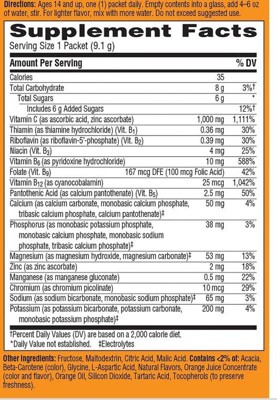 - Vitamin C packets with delicious and refreshing natural orange flavor and natural sweeteners