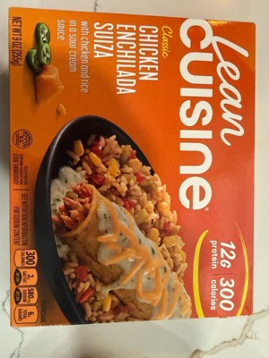 [This review was collected as part of a promotion.] The Lean Cuisine Chicken Enchilada Suiza can be found on the frozen section. It is Very easy to cook. The vegetables corn, bell pepper in the rice tastes amazing very cheesy, with a thick sour cream sauce.