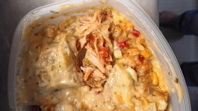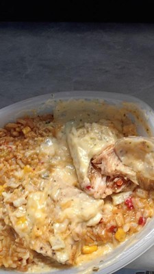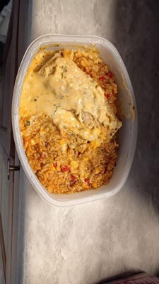 [This review was collected as part of a promotion.] Creamy, tangy suiza sauce with tender chicken, melty cheese, and zesty rice, corn and veggies. Tastes French and flavorful, a bit spicy. Redy in a 6-7 minutes in the microwave. 300 calories with 12grams of protein. 6g of sugar and 2g of saturated fat looks too much, but from time to time can be consumed.
