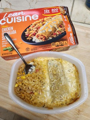 [This review was collected as part of a promotion.] The Chicken enchilada suiza from Lean Cuisine is ok. The portion size is great for lunch or a light dinner. There is quite a bit of chicken rolled up in the enchilada, but the sauce and rice were slightly too sweet for me. If I were to purchase this again, I think I would try and figure out a way to keep the enchilada from getting so tough. Maybe a minute or so less cook time.