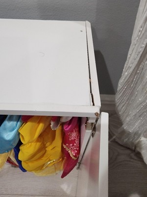 The closet is so cute but it arrived damaged. The top was busted. This was delivered to my door in just the toy box-no packaging to protect it. This could easily be fixed with better shipping packaging.