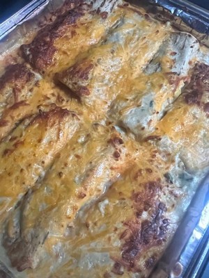 [This review was collected as part of a promotion.] These chicken enchiladas were super tasty, though my mom found them too salty. I still found them delicious and cheesy. Heating them in the oven half covered provided the cheese looking both nicely toasted and just melted. The large amount of enchiladas allowed my family to enjoy them over several meals, which made it a good value. I recommend these enchiladas to anyone who loves cheesy food that is easy to make!