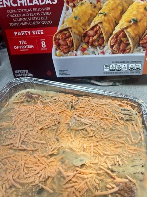 [This review was collected as part of a promotion.] The family size meal was so convenient to pop in the oven. Each person had servings of rice and enchiladas. The container made it easy to pack up and put away as leftovers! If you’re a fan of queso, this is your dish!
