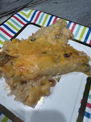 [This review was collected as part of a promotion.] Followed the cooking instructions and came out great a d warm all the way through. Great appearance and the enchiladas stayed rolled and did not fall apart. Taste was great. Very cheesy and rich. Rice was soft. Good meal for the family.