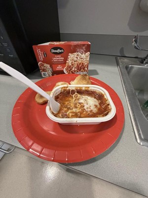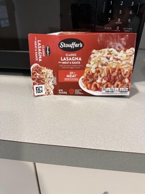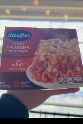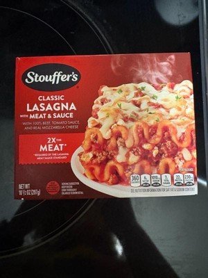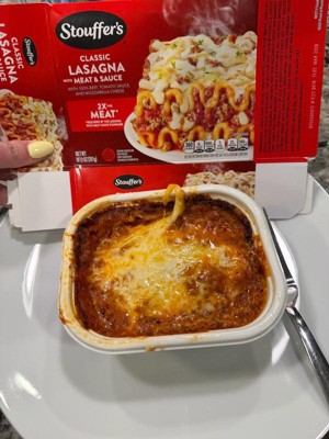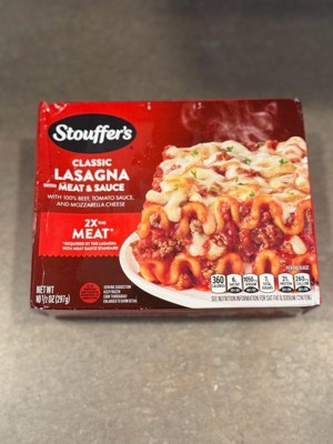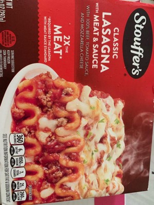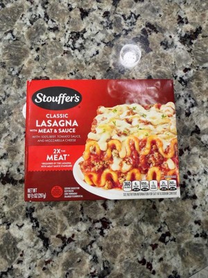 [This review was collected as part of a promotion.] ±Ive been a fan of Stouffers for years and their lasagna with meat sauce did not disappoint! The texture was great, smelled fresh baked and most importantly, was TASTY! The portion size was amazing as well, leaving me full for hours! Prep was easy and took 11 min in the microwave.