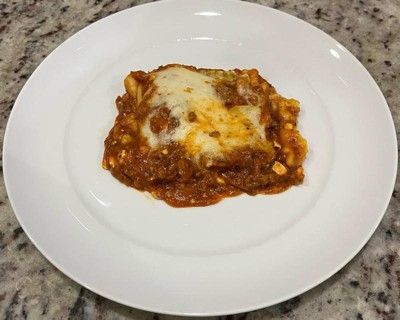 [This review was collected as part of a promotion.] Overall my family did enjoy this meal. It was quick and convenient, and had good flavor. There was a lot of sauce cheese and meat, noodles were a little soft but tasted good. My only complaint was due to time restraints (soccer practice night) I made it via the microwave instructions and the cheese in the center burned. We were able to pull off the burnt cheese, but I was rather disappointed in the fact that despite following instructions it still burnt. If and when I make it again, I would recommend making sure to cook it via the oven instead in order to get even cooking.
