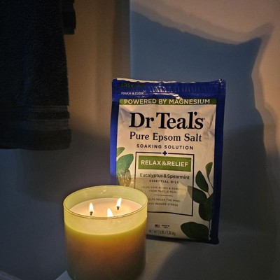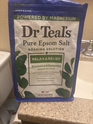 Dr Teal's Epsom Salt Magnesium Soak - Relax & Relief with Eucalyptus & Spearmint - 3lbs: Soothing, Combination And Dry Skin, Gusseted Bag