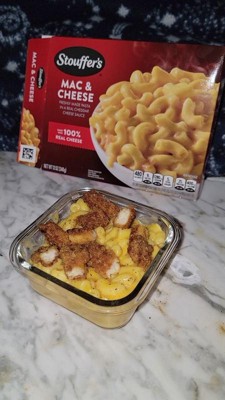 [This review was collected as part of a promotion.] The ultimate comfort food and my favorite late night snack. I added some popcorn chicken for extra protein and it was delicious. The cheese is super gooey and you get a lot for a single serving, at least for me. I only eat Stouffer's Mac and cheese if it's not homemade because no other microwaveable mac ever tastes this good.