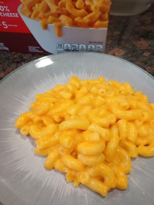 [This review was collected as part of a promotion.] Great mac n cheese. I was pleasantly surprised. I heard it's good, but was excited to try it out. The family size feeds five servings. 100% real cheese. Take about 75 minutes to bake in the oven. Very easy and fast. Great packaging, smells great and my kids thought it was homey