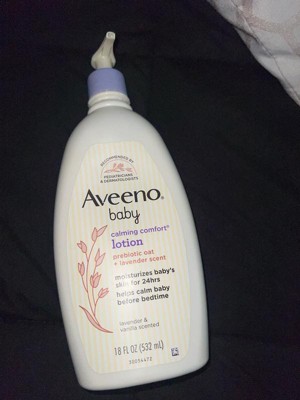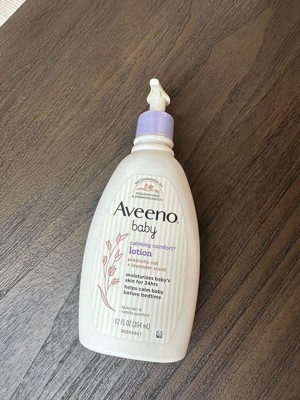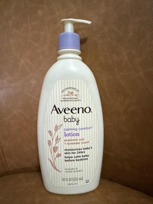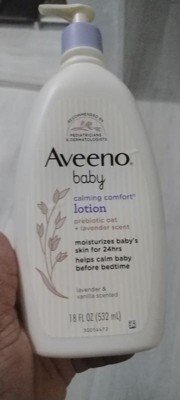 Help moisturize baby's developing skin & relax them at bedtime. Aveeno Baby Calming Comfort Moisturizing Body Lotion with relaxing scents of lavender & vanilla moisturizes baby's skin for 24 hours. This non-greasy baby lotion features nourishing prebiotic oat to help keep developing skin feeling & looking healthy. The fast absorbing nighttime lotion is formulated with calming scents of lavender & vanilla to help calm baby before bedtime. Suitable for delicate skin, this soothing lavender baby lotion can be used for gentle massage, which is clinically shown to relax babies & improve their overall well-being. Aveeno Baby Calming Comfort Body Lotion is clinically proven to moisturize dry skin for 24 hours. Aveeno moisturizing bedtime lotion is recommended by pediatricians & dermatologists, plus, is pH balanced & formulated free of parabens, phthalates & phenoxyethanol to care for your little one's delicate skin.