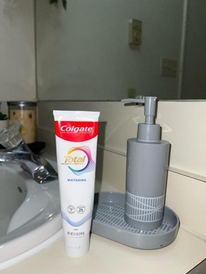 Colgate Total Active Protection Plaque Cleanse After just one use I could immediately tell my teeth looked whiter and brighter thanks to this toothpaste that puts in extra effort so you don't have to. It starts as a blue gel that brushes into a foam to fight against gingivitis, plaque, tartar, sensitivity, weak enamel, stains, bad breath and cavities. Knowing all the bases are covered from cavities to sensitivities it's an easy choice with amazing results. The minty flavor isn't too overpowering but still strong enough to leave you with the freshest breath all day