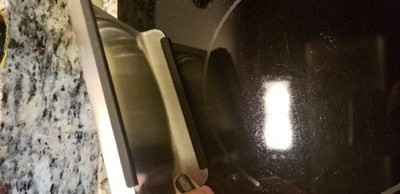 Looks good with my stainless steel appliances and on my countertop. Like the rubber grips so it stays in place on the counter. And can throw in the dishwasher.