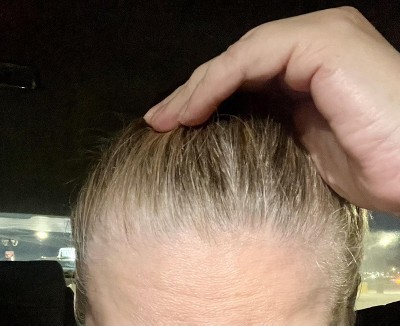 My natural color is I a light brown with red highlights, auburn. This turned my gray roots into a slightly darker version of Lucille Ball’s orange/red color. It’s great if you want to look like a circus clown. 🤡