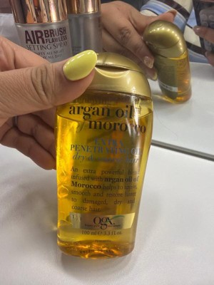 I have been using ogx argan oil of morocco penetrating oil and i has quickly become a staple in my hair routine . the texture is lightweight and silky . It quickly absorbs without leaving greasy residue. It makes my hair smooth and silky.