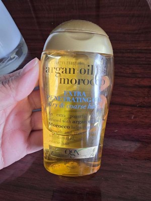 The ogx renewing argan oil of Morocco extra penetrating oil, its value for money easy to use the absorption is perfect I like the way it’s build up dispensing so great