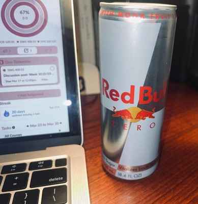 [This review was collected as part of a promotion.] I’m going to be honest: as a nursing student, this drink is a lifesaver when I'm cramming for an exam the night before. After hours of studying, my brain starts to forget things, and I just stare at the material. Then I reach for the Red Bull, and my brain starts to focus again. The taste is the original Red Bull flavor which tastes a little artificial. I really appreciate the zero sugar and how it has fewer calories than the original. Especially as someone who is trying to watch their sugar intake but still needs the energy. There is a bit of an aftertaste but that was the least of my concerns when I was studying. Overall I’d say it’s worth it.