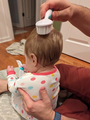 Good brush for baby and it is so soft so will not just baby’s head. It also comes with a comb that I like to use while baby’s head is wet to make sure there are no tangles while drying.