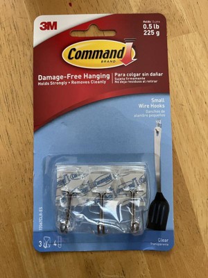 [This review was collected as part of a promotion.] Command clear small wire hooks are such a great product. I was able to hang my dish brush up near the sink without having to make any holes in the wall. They stick really good and can hold up to a half pound. I like how easy they are to remove without any damage to the walls. It is so good to be able to hang whatever I want wherever I want without any damage to the walls.