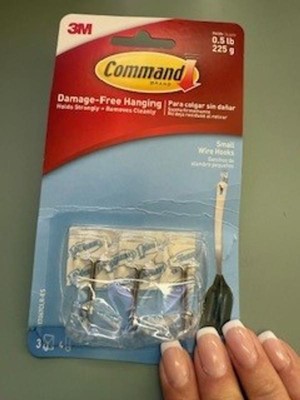 [This review was collected as part of a promotion.] These small wire hooks have been convenient for my jewelry collection. I have a homemade jewelry cabinet, but I have no place to hang necklaces. I was able to use these small wire hooks to add to the inside of the display, showing the necklaces I have. The hooks adhered nicely to the cabinet, and with room to move, I can hang multiple pieces on the hooks or even a chunky necklace, as the wire part can accommodate the added width. I know my necklaces will be safe, and when I am done, removal will be a breeze. Thank you, 3M and Command, for providing a sample of this product for testing.