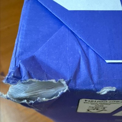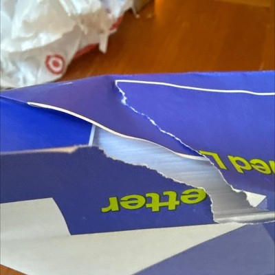 The paper package was torn both sides. It was completely opened at one side and partially opened at another side. The package was placed inside the Target box and the outside box was intact. I don't want to waste the time to return it.