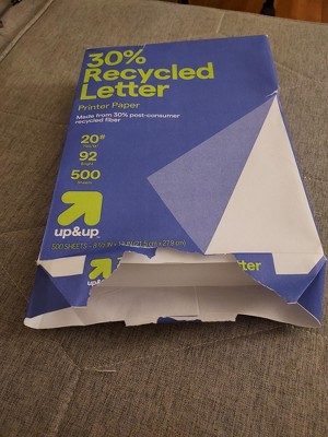 Recycled Printer Paper Letter Size 20lb 500ct White - up&up™: 30% Recycled, 8.5x11 Inches, 92 Brightness, 500 Sheets