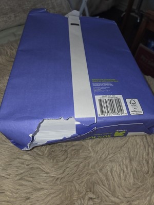 Package contents arrived ripped on both ends! This ream of Up and Up printer paper was out of stock at my store, but was offered as free delivery. Beware when ordering eligible items for free shipping. Occasionally, my items have arrived damaged due to poor packaging which allows items to burst inside the box. At least the paper wrapping kept the printer paper intact without adding creases or bent corners and still useable for my needs.