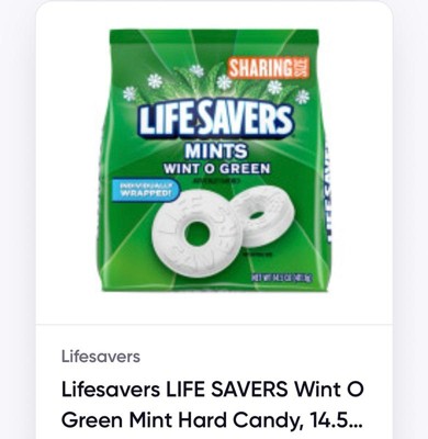 Lifesavers mint candy was a high school favorite. It’s the right size very convenient and the taste is very minty. Very much durable cause it’s hard candy and the appearance is good.