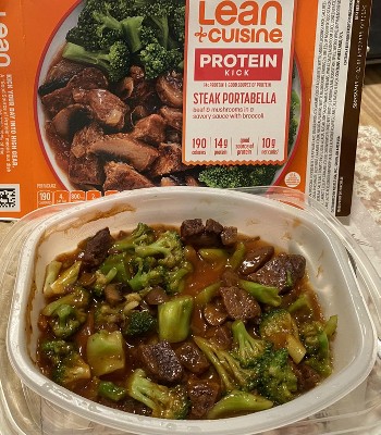 I was so pleasantly surprised at the Lean Cuisine Steak Portabella! I decided to buy one to try for lunch while I'm working during the week. It is really, really good! Many frozen meals have a preservative taste or use too much cut peppers or onions, which I can't eat. But this meal was seasoned just right. The meat was tender and flavorful and the broccoli is just the perfect side. I just added this to my favorites and will buy it again and again!