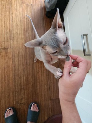 My cat comes running!
