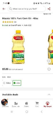 I ordered mazola and was given cristo I live to far to drive back 20 minutes