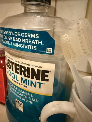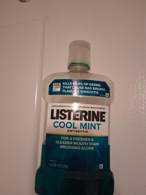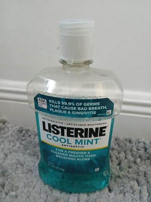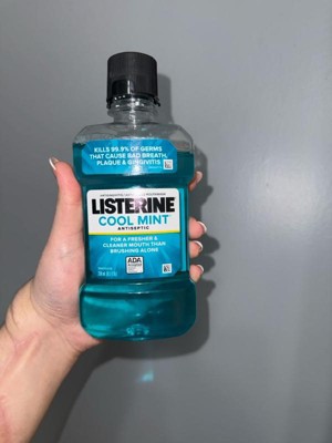 Listerine cool mint mouthwash works great leaving my mouth minty fresh. I love that it kills 99.9% of germs. It doesn’t irritate or burn when swishing. The bottle holds a great amount and allowing for easy pouring. I would recommend this product.