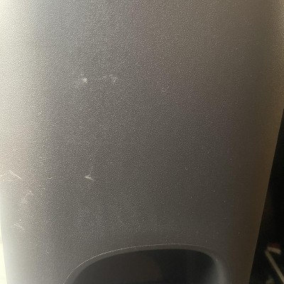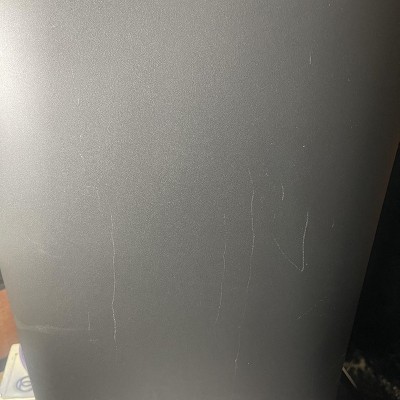 Waste basket has scratches all over it