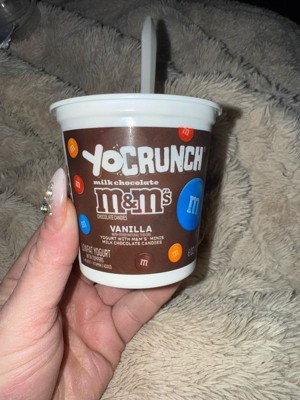 I love this fun tasting chocolate filled yogurt! Great for kids or parents as a midnight snack. The vanilla with the mnms just mix so well together . Smooth with a crunch