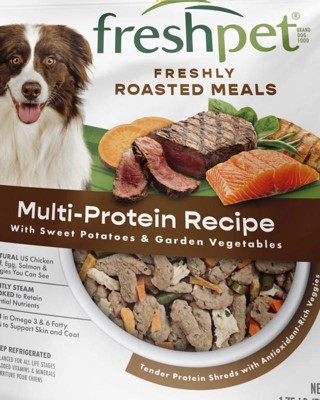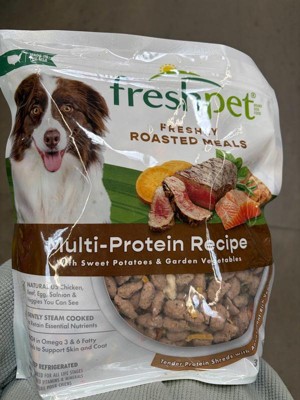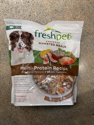 [This review was collected as part of a promotion.] My dog really enjoys the Fresh Pet Multi-Protein Roasted Meals. It's so easy and ready to serve. The price is a little high but you get a lot of servings in that bag. Give it a try, your dog will love you for it!