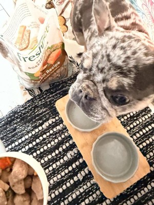 [This review was collected as part of a promotion.] Freshpet Multi-Protein Roasted Meals Recipe has a moist texture. Is meaty and tender and doesn’t make a crunchy noise when eating. Comes in a sturdy resealable package. My dog devoured it. I really like the feeding recommendations on the package based on your dogs weight. The ingredients seem like a healthy choice for your dog.