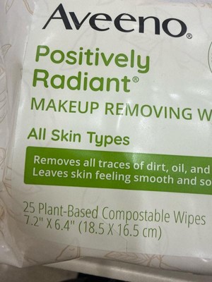 Aveeno Positively Radiant Oil-Free Makeup Removal Facial Wipes for All Skin Types - 25 ct: Hypoallergenic, Paraben-Free, Alcohol-Free
