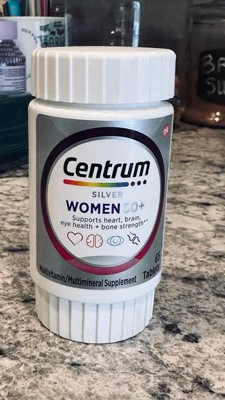Centrum Multivitamins women ages 50+. and there is 100 tablets in a bottle, ones daily with food . and my Recommendation support eye, bones, heart,brain it’s worth,it. and all the ingredients on the packaging. and manufacturing is a very important in a balanced economy.
