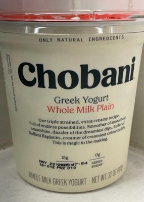 Chobani greek yogurt whole milk plain is rich, extra creamy and packed with protein. Perfect for smoothies, cooking , or enjoying fresh with your favorite toppings.