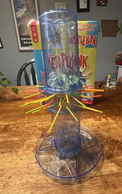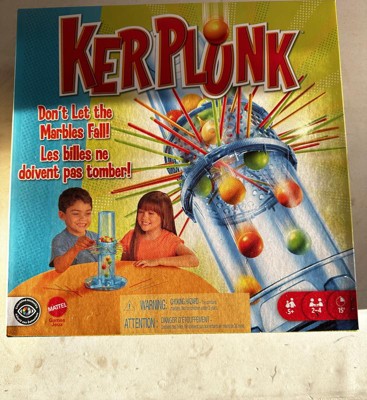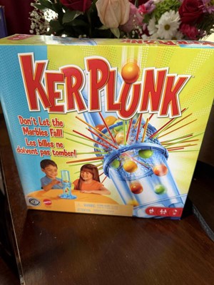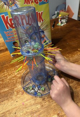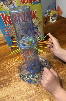 [This review was collected as part of a promotion.] Kerplunk is a fun game that allows people of all ages to play together. It’s easy to understand and set up. Tips: Carefully consider where you are placing the sticks so the marbles don’t fall so easily. I didn’t like that you had to move the whole top portion around for the next player as it may trigger an avalanche of marbles!