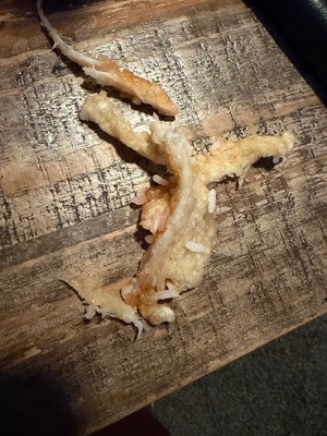 The product photo and description sound so good...but it's nothing like restaurant food. The tempura batter doesn't get crispy (oven method) and stays pale and soft. The sauce is disgusting! It has an artificial, cardboard taste and smell.