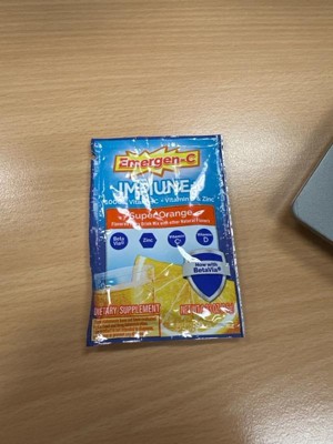 Emergen-C Super Orange gives solid immune support: bright citrus taste, generous vitamin blend, handy packaging, good value. IT WORKS well!