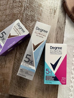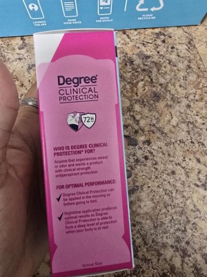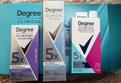 [This review was collected as part of a promotion.] Love this series of degree clinical deodorant and spray. Goes on clean and clear and stays all day. It has a light soft fragrance I really like. Overall great product and highly recommend to those who need the extra help.