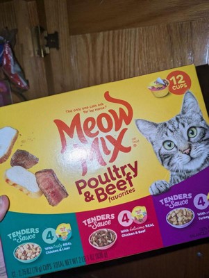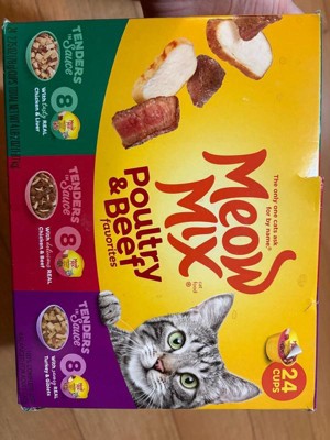 My cat absolutely loves the Meow Mix Tenders in Sauce Variety Pack! Each pouch has a good portion size, and the texture is soft and easy for her to eat. The sauce keeps it moist and flavorful, and she always finishes her meal. I like that it offers both poultry and beef options, so she doesn’t get bored. The packaging is super convenient — easy to open and serve without any mess.