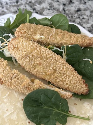 These chicken tenders are highly praised for their taste, crispiness, and convenience, making them a favorite for quick meals. Many guests appreciate that they are gluten-free and organic, suitable for various dietary needs. However, some have noted inconsistencies in quality and concerns about the meat texture. Overall, they are a popular choice for families and those needing a quick, tasty meal option.