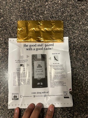 Delicious dark chocolate bar with almonds and sea salt, and I love how it helps endangered species