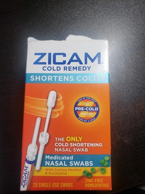Zicam Cold Remedy Cold Shortening Medicated Zinc-Free Nasal Swabs - 20ct: Homeopathic, Menthol, Galphimia Glauca