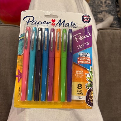 Paper Mate Flair 8pk Tropical Vacation Felt Pens 0.7mm Medium Tip Multicolored: Colorful Papermate Pens, Fade-Resistant